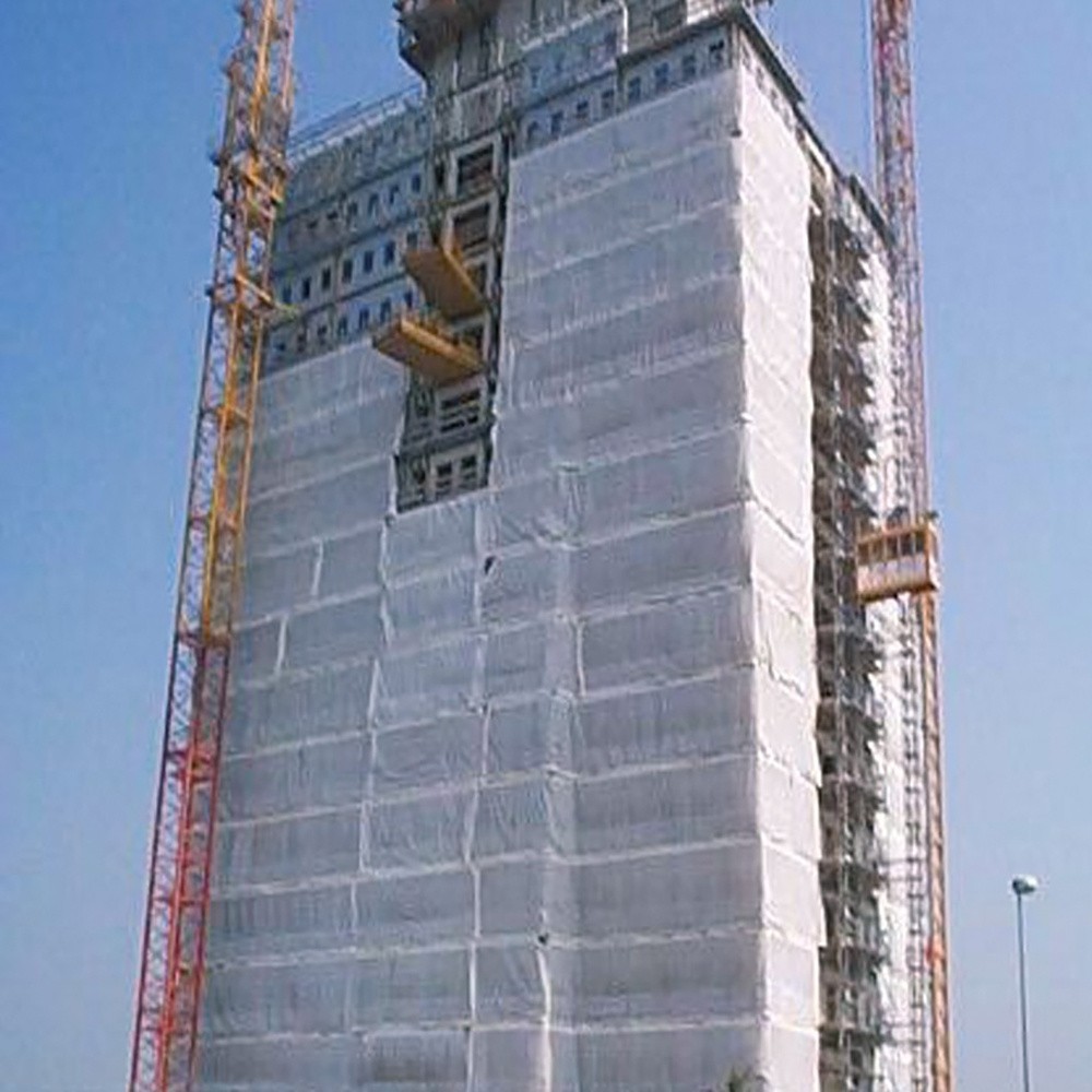 kwalitatief sterk polyetyleen gaasweefsel, zeer dicht en windongevoelig. Geschikt voor vele malen hergebruik. UV gestabiliseerd. Regendoorlaat in verticale positie is nihil.